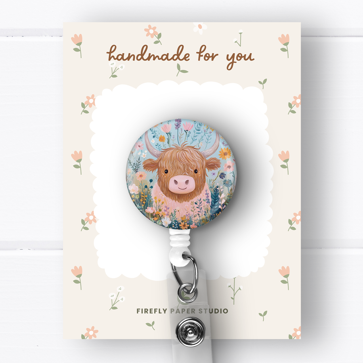 Blue Highland Cow Badge Reel