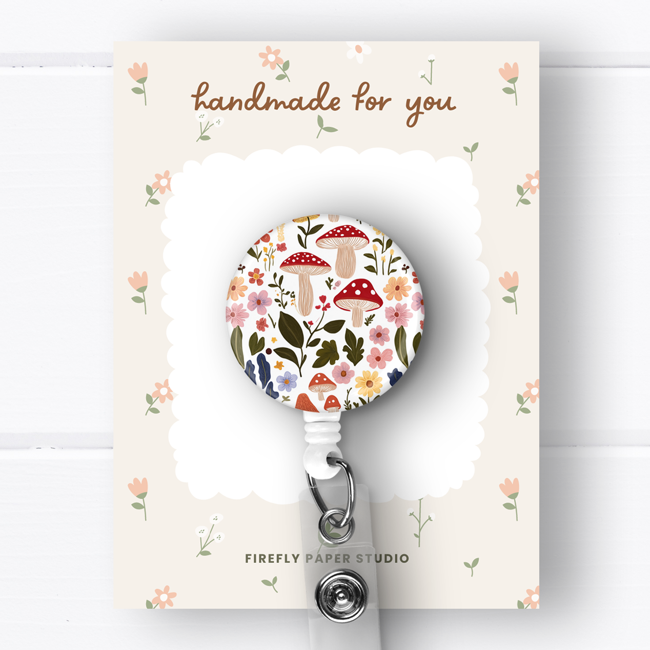 Floral Mushroom Badge Reel